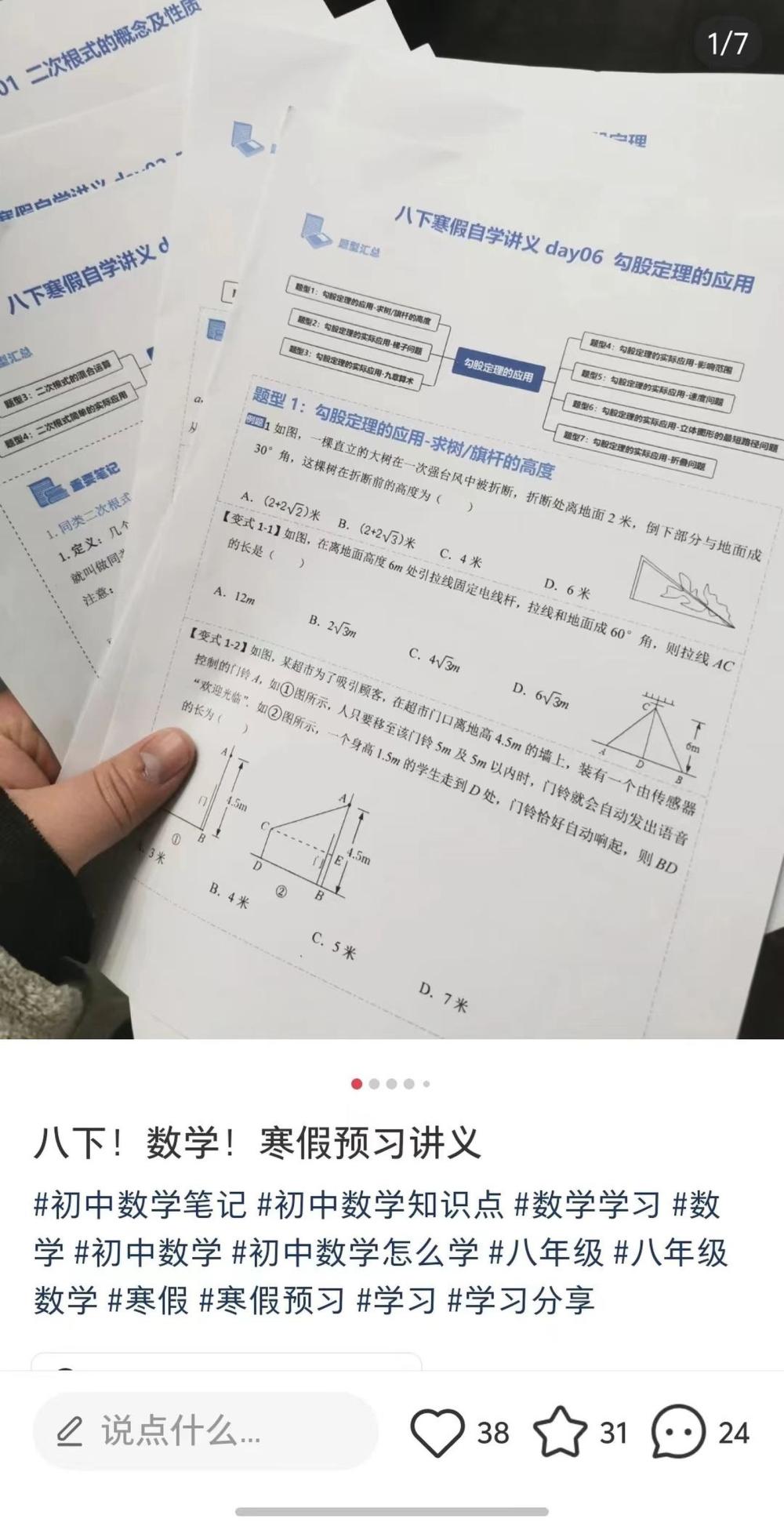 这个博主就是在6月中旬,疯狂铺设关于“初一升初二衔接”、“暑假逆袭计划”的笔记。当时发出来可能数据一般,只有几十个赞。