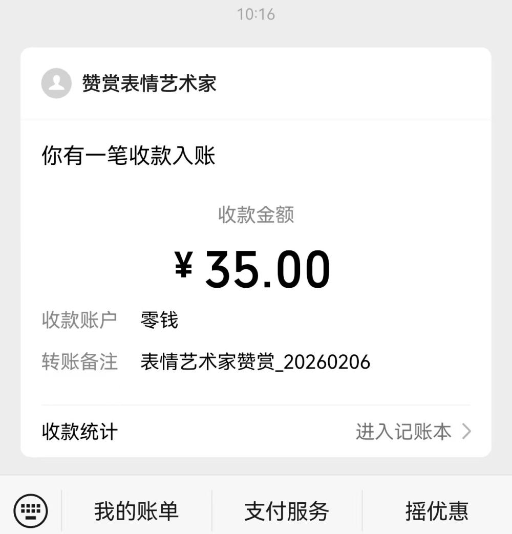 我当时做这套表情包,纯粹是想着自己用方便,顺手传到微信表情包市场,以前也有打赏的,但一块两块居多,我也没当回事。