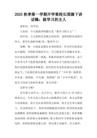 2025秋季小学开学典礼校长致辞:新学期的期许:收心聚力,再创辉