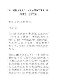 5.12是防灾减灾日,校长在国旗下演讲:防灾减灾,守护生命