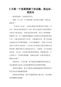 5月第一个星期国旗下讲话稿:我运动、我快乐[推荐]