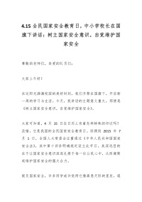 4.15全民国家安全教育日,中小学校长在国旗下讲话:树立国家安全意识,自觉维护国家安全