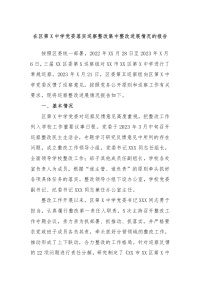 在区第X中学党委落实巡察整改集中整改进展情况的报告
