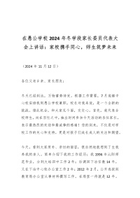 在愚公学校2024年冬学段家长委员代表大会上讲话:家校携手同心,师生筑梦未来