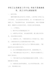 学校卫生保健室工作计划:积极开展健康教育,真正为学生健康着想