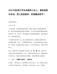 2025年秋季开学全体教师大会上,德育副校长讲话:把心放进教育,把爱融进细节!