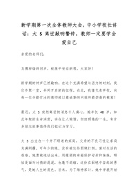 新学期第一次全体教师大会,中小学校长讲话:大 S 离世敲响警钟,教师一定要学会爱自己