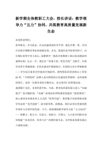 新学期全体教职工大会,校长讲话:教学领导力“五力”协同,共筑教育高质量发展新生态