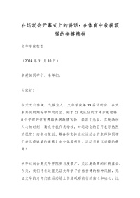 在运动会开幕式上的讲话:在体育中收获顽强的拼搏精神