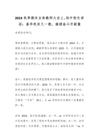 2024秋季期末全体教师大会上,初中校长讲话:春华秋实又一载,接续奋斗开新篇
