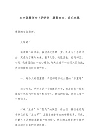 在全体教师会上的讲话:凝聚合力,追求卓越