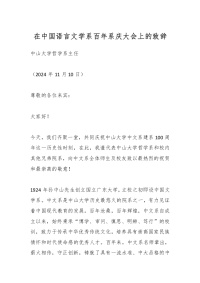 在中国语言文学系百年系庆大会上的致辞