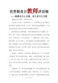 世界粮食日教师讲话稿