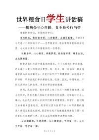 世界粮食日学生讲话稿