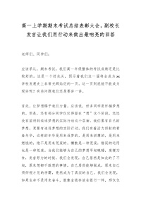 高一上学期期末考试总结表彰大会,副校长发言让我们用行动来做出最响亮的回答
