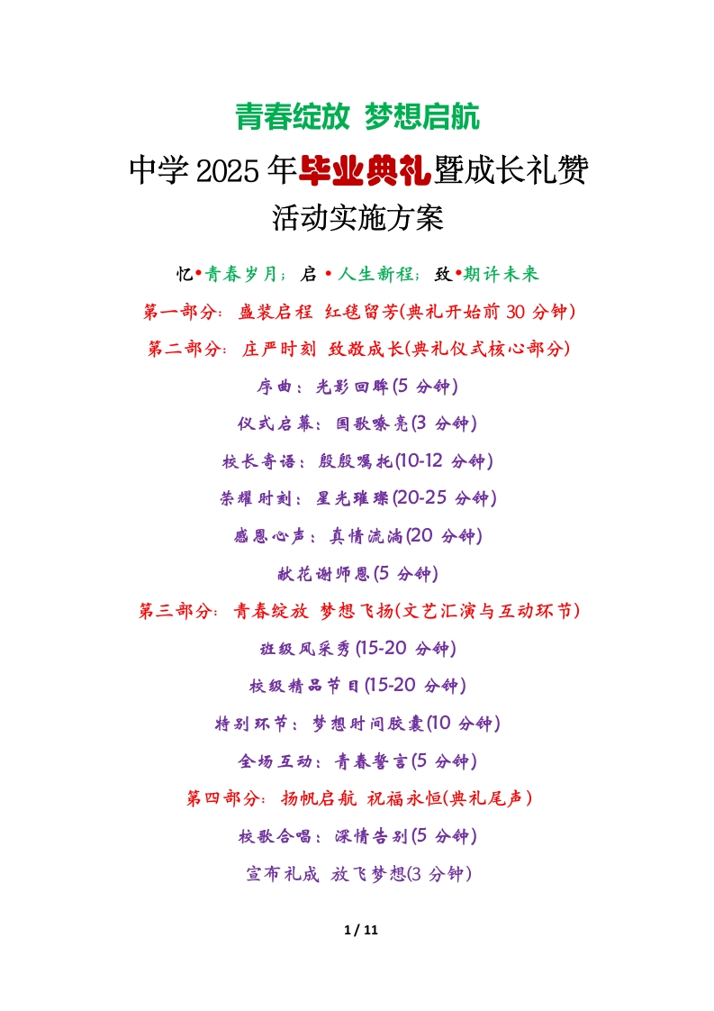 首页热门资源学校活动中学2025年毕业典礼暨成长礼赞活动实施方案
