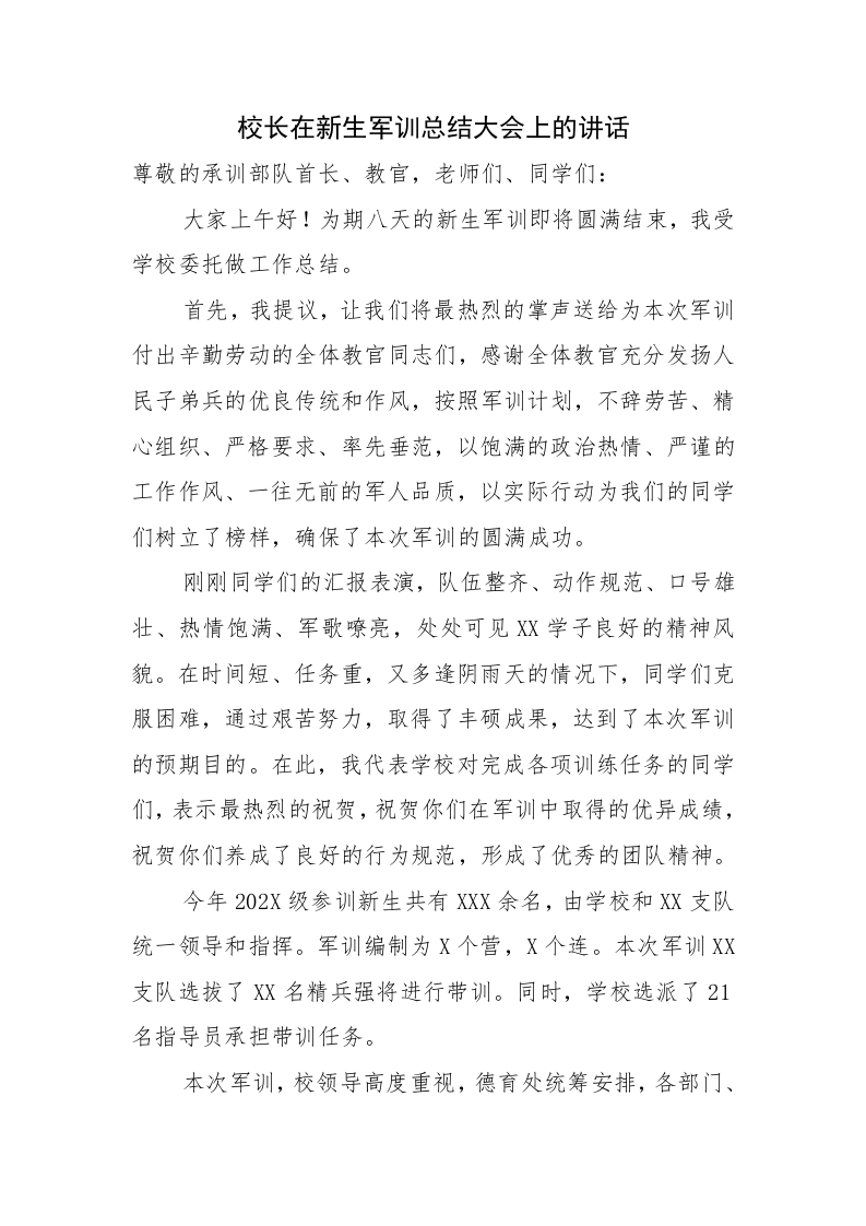 校长在初高中新生军训总结大会上的讲话