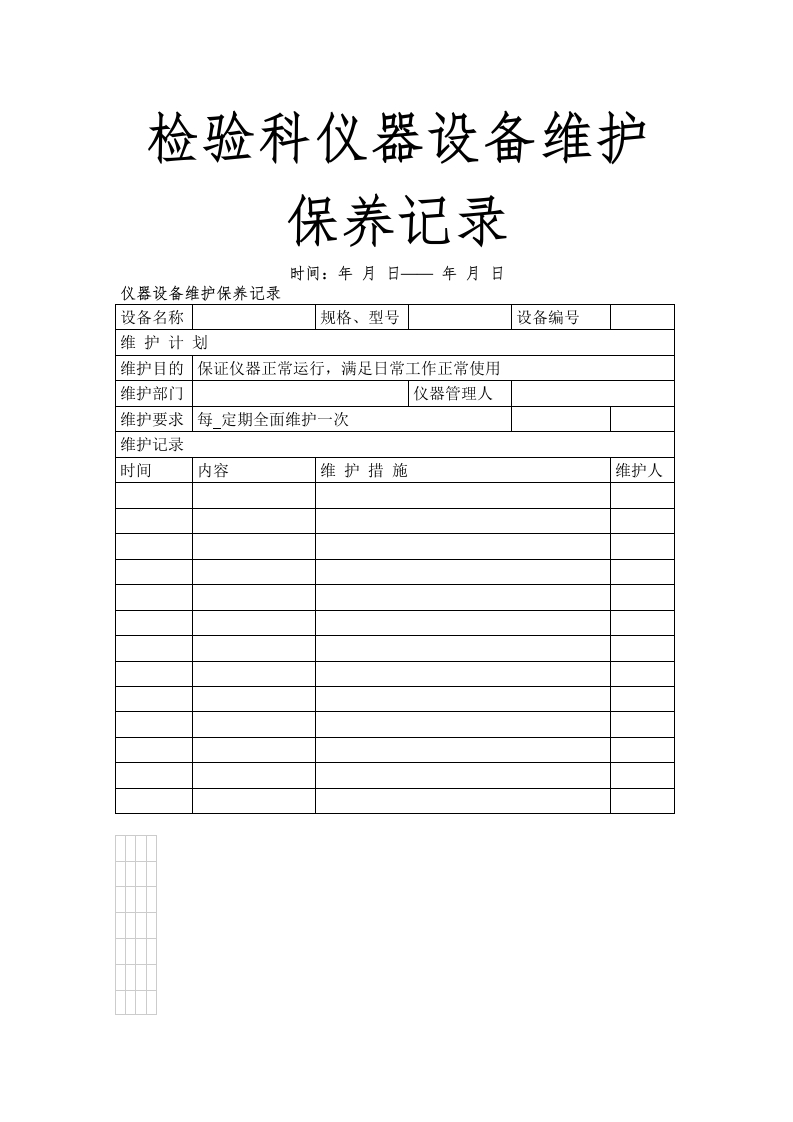 首页安全资料安全表格检验科仪器设备维护保养记录