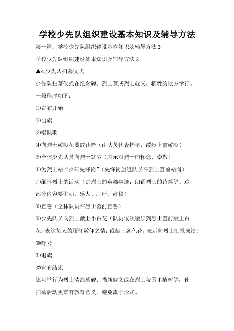 学校少先队组织建设基本知识及辅导方法