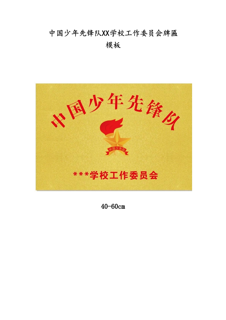 首页少先队库管理方案中国少年先锋队XX学校工作委员会牌匾模板