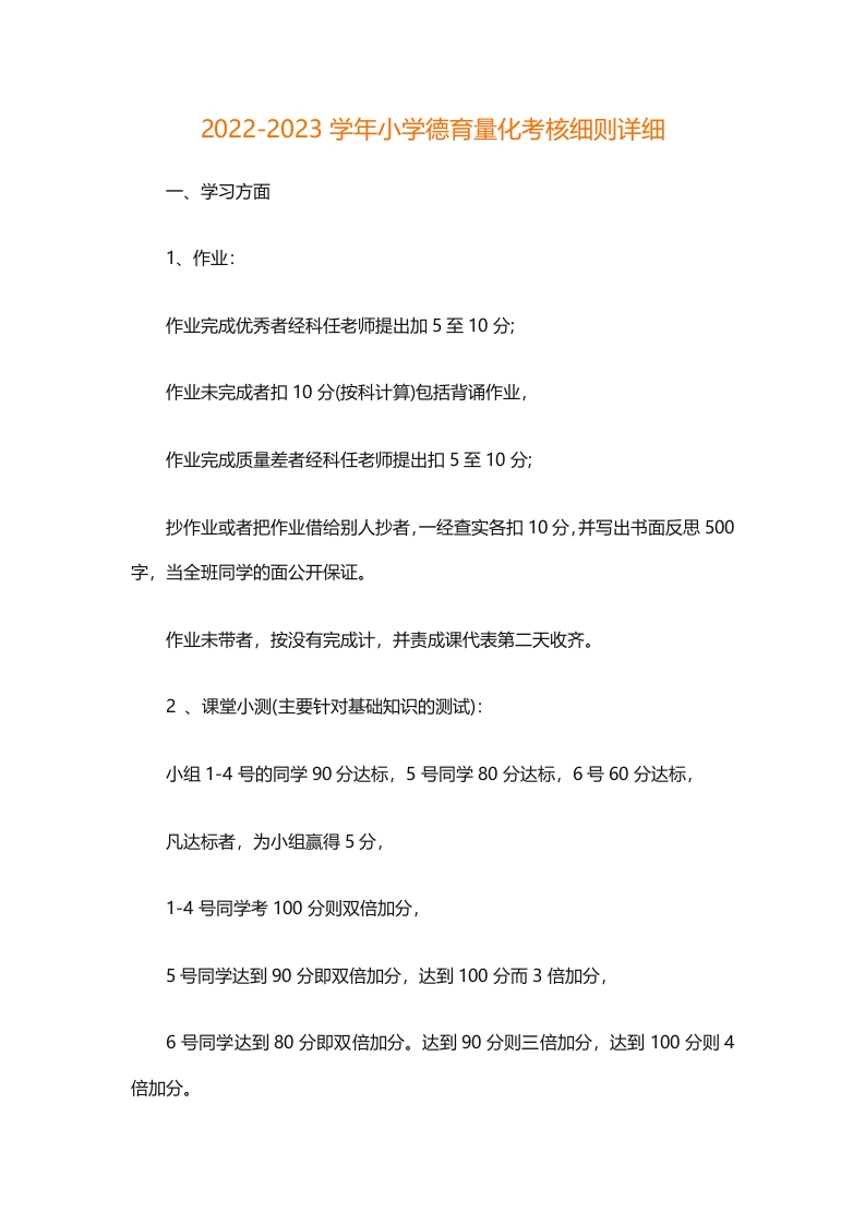 首页德育资料考核规范 2022-2023学年小学德育量化考核细则详细