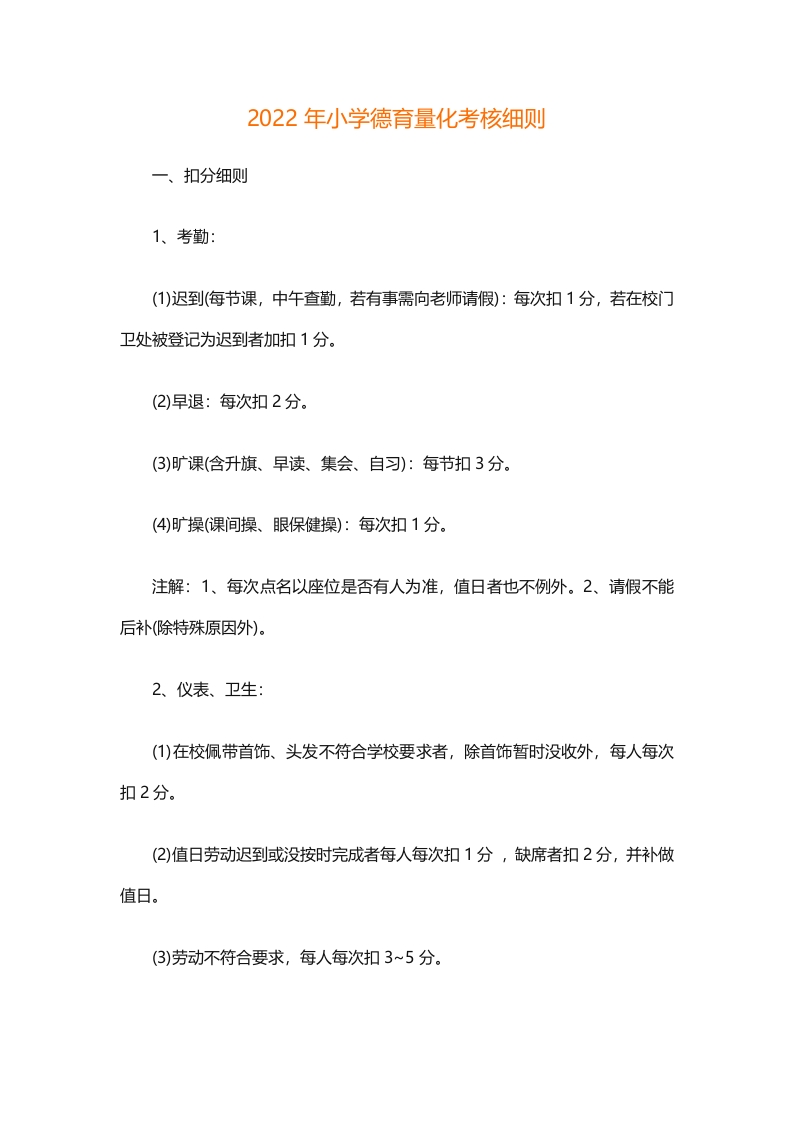 首页德育资料考核规范 2022年小学德育量化考核细则
