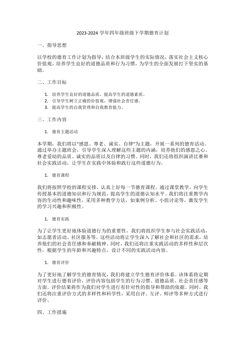 首页德育资料考核规范 2023-2024学年四年级班级下学期德育计划