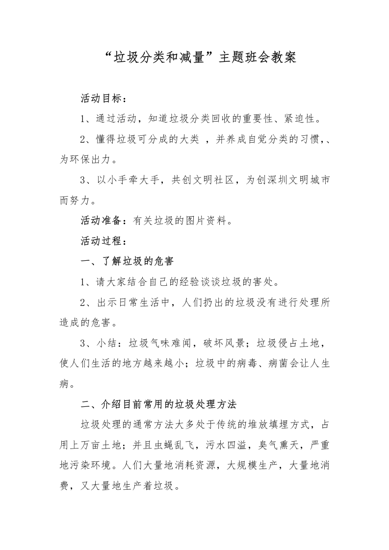 首页综合资料垃圾分类“生活垃圾分类和减量”主题班会教案