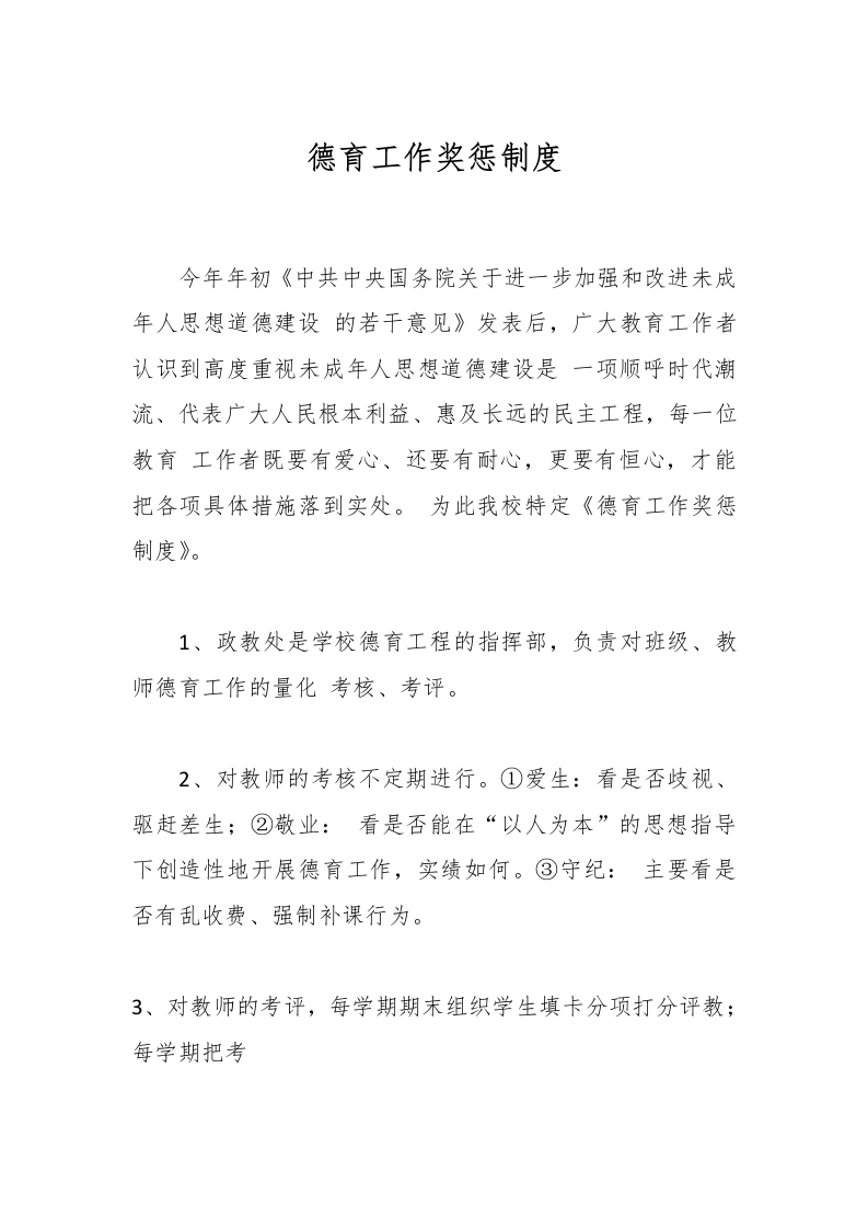 德育工作奖惩制度