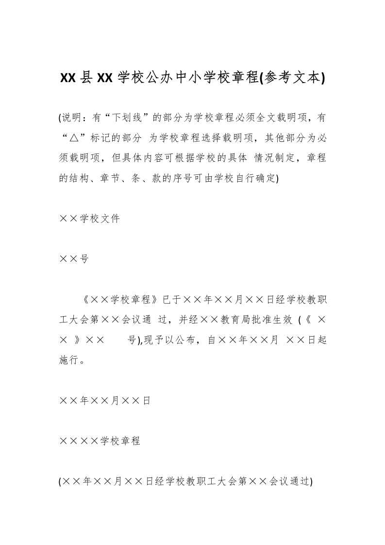 首页学校教务法律法规XX县XX学校公办中小学校章程(参考文本)