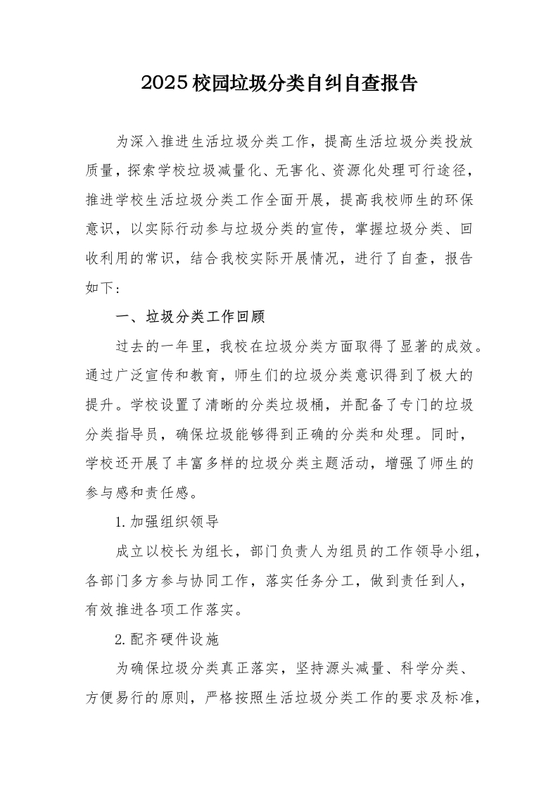 首页综合资料垃圾分类2025校园垃圾分类自纠自查报告