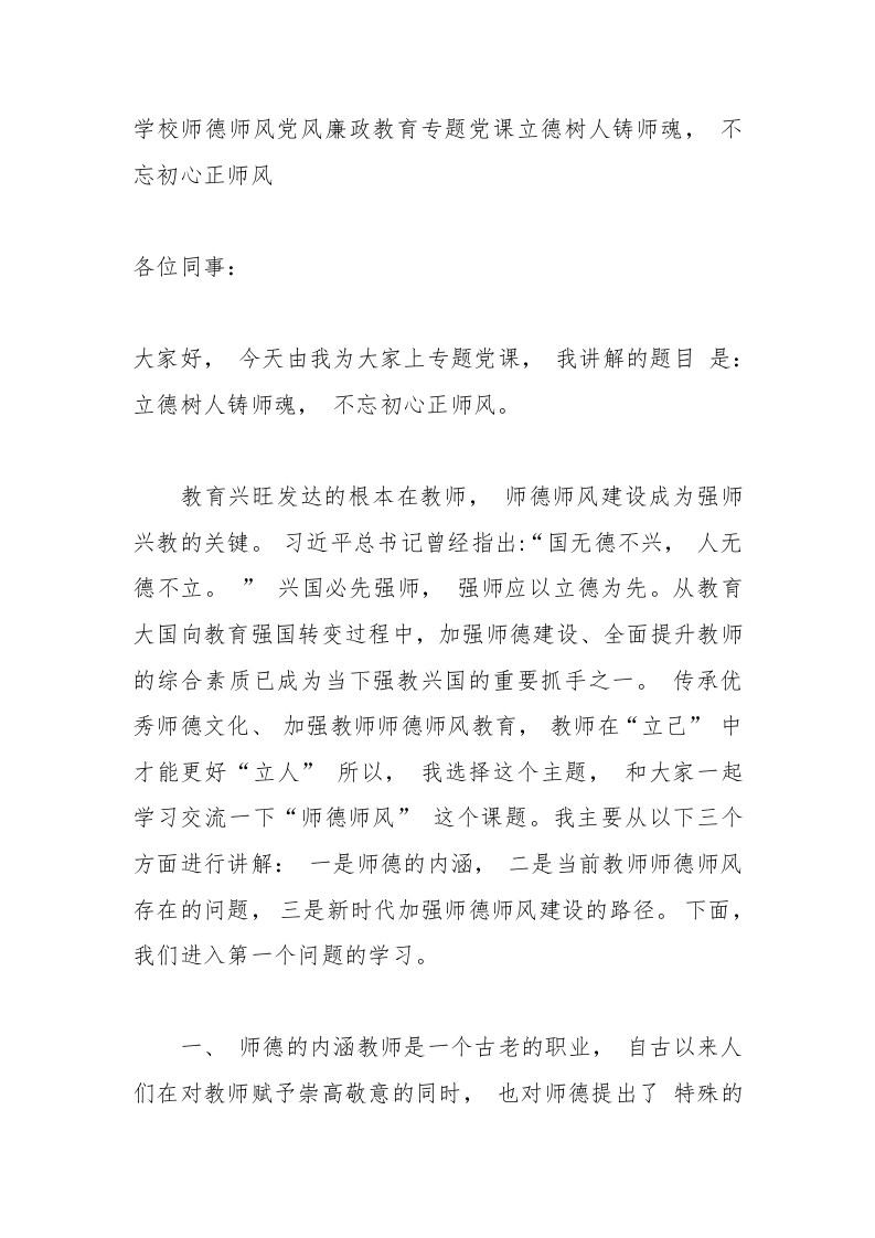 2025年学校师德师风党风廉政教育专题党课立德树人铸师魂, 不忘初心正师风