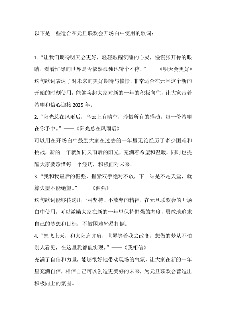 11、元旦联欢会开场白中使用的歌词: