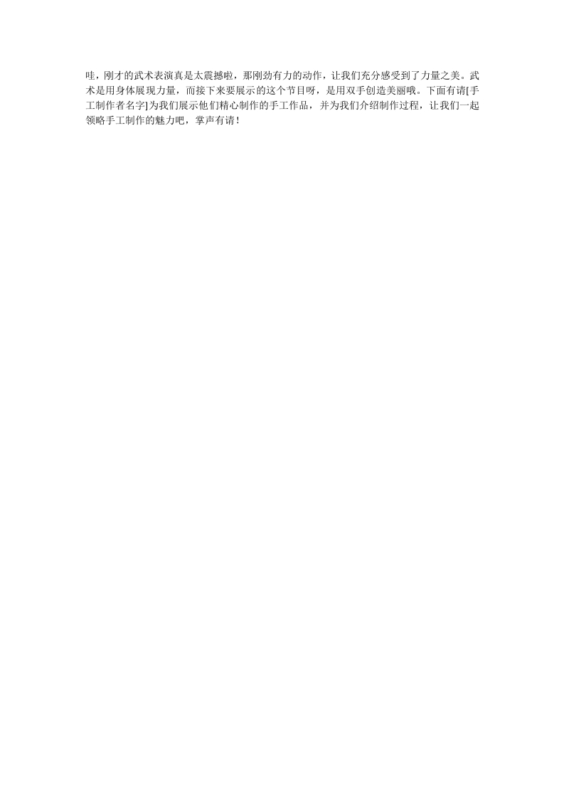 首页热门资源重要节日27、从武术节目到手工制作展示节目串词