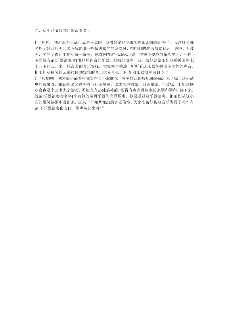 首页热门资源重要节日34、从小品节目到乐器演奏节目串词