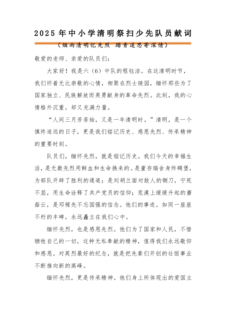 首页热门资源重要节日2025年中小学清明节祭扫陵园少先队员献词