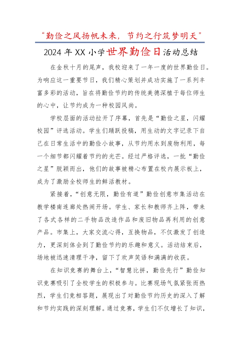 首页热门资源重要节日9.2024年世界勤俭日活动总结