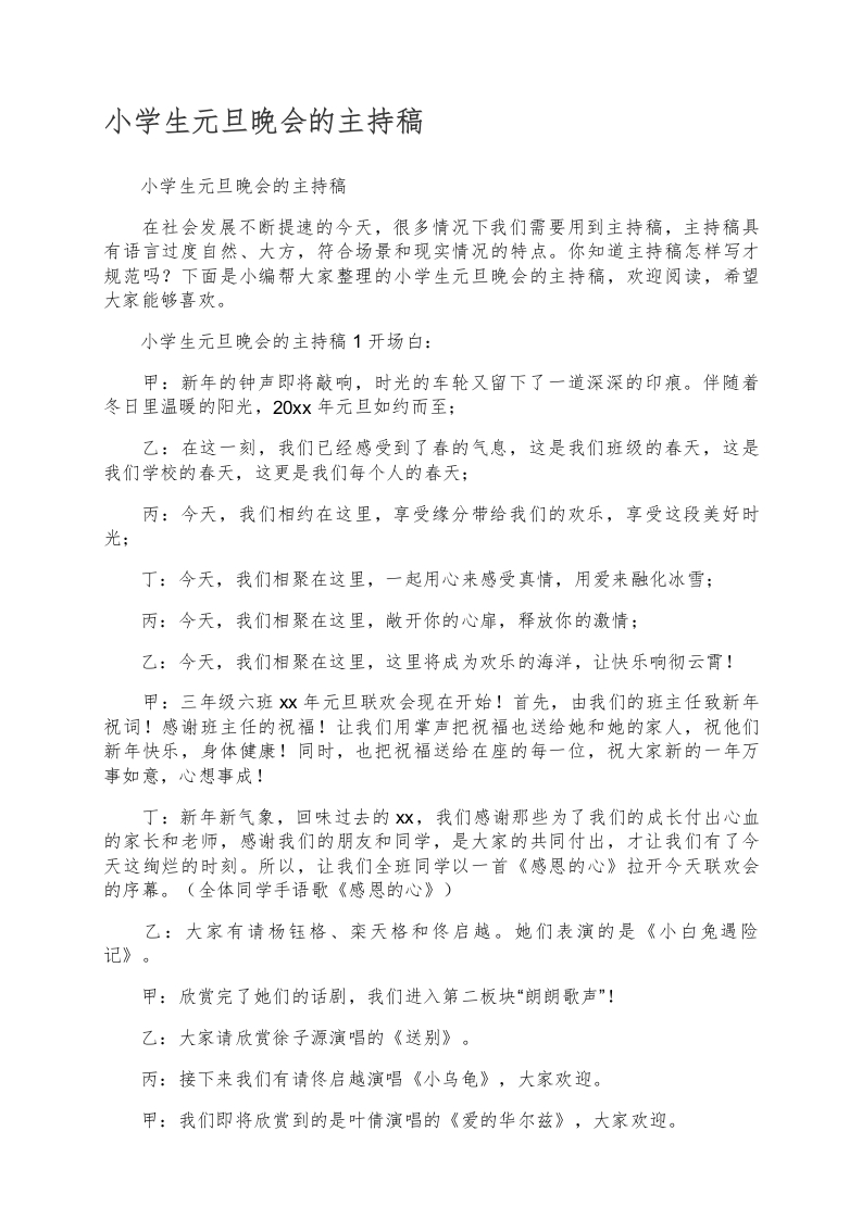 首页热门资源重要节日40、小学生元旦晚会的主持稿-4人主持完整稿参考