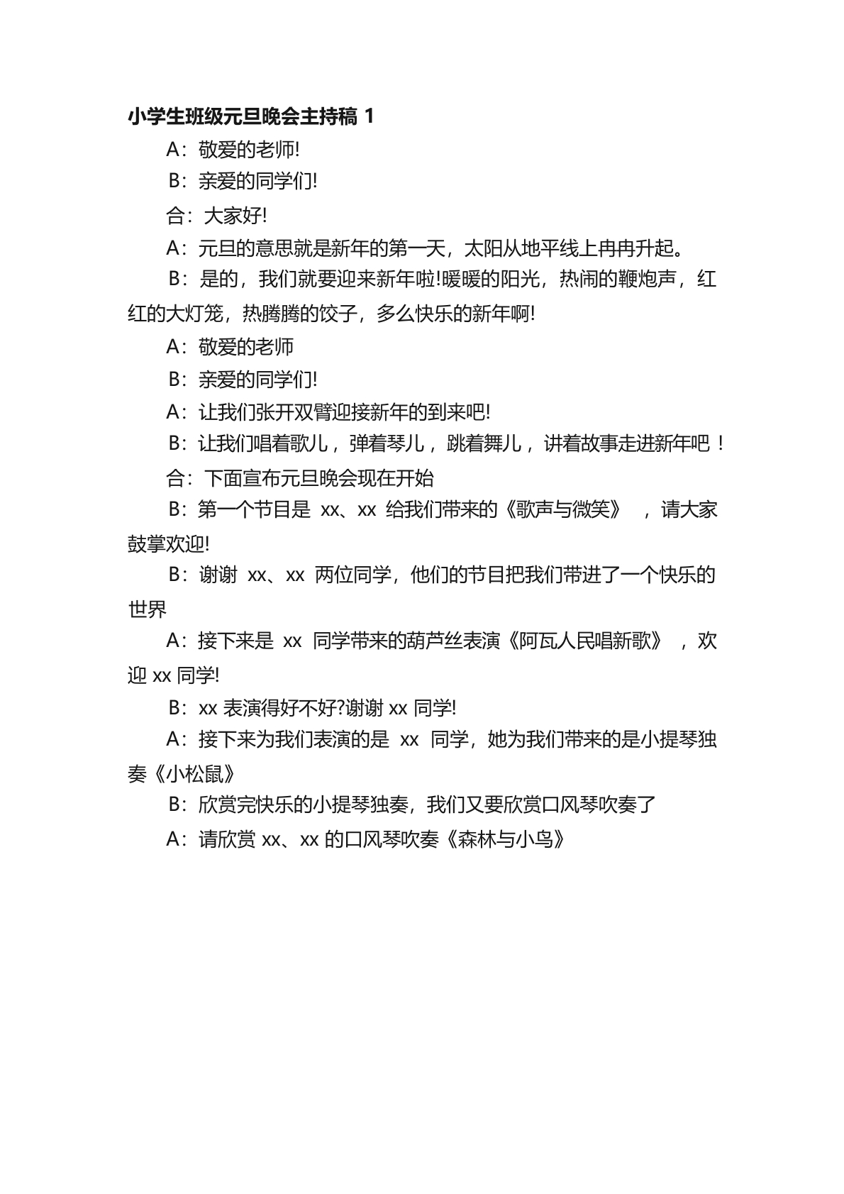 50、小学元旦主持稿-2人主持完整版