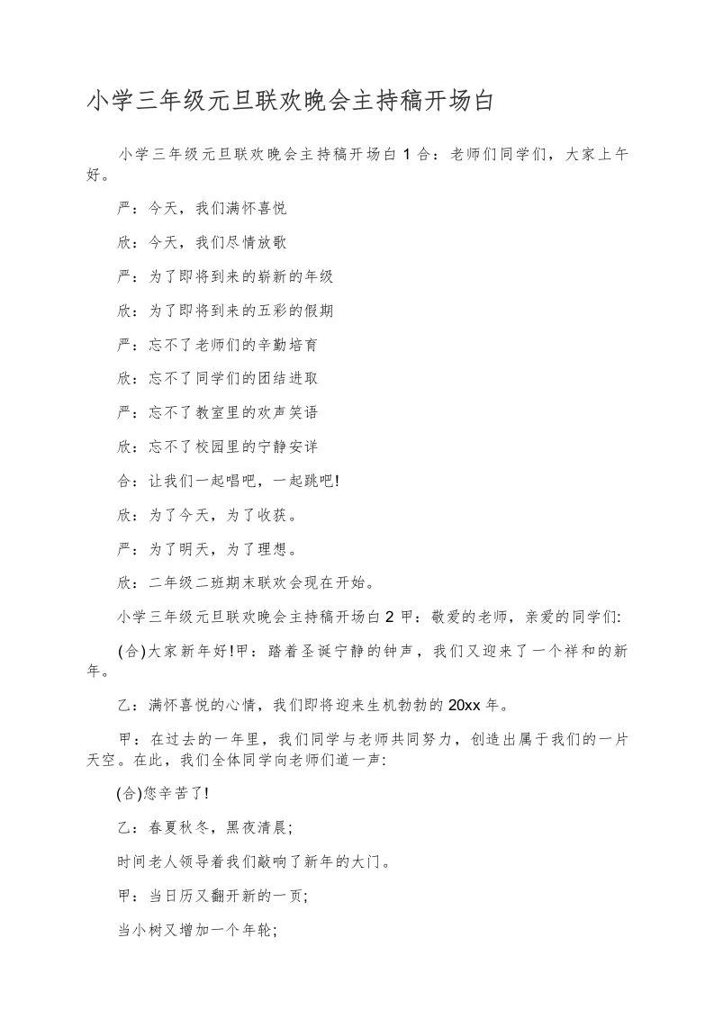 52、小学三年级元旦联欢晚会主持稿-2人组