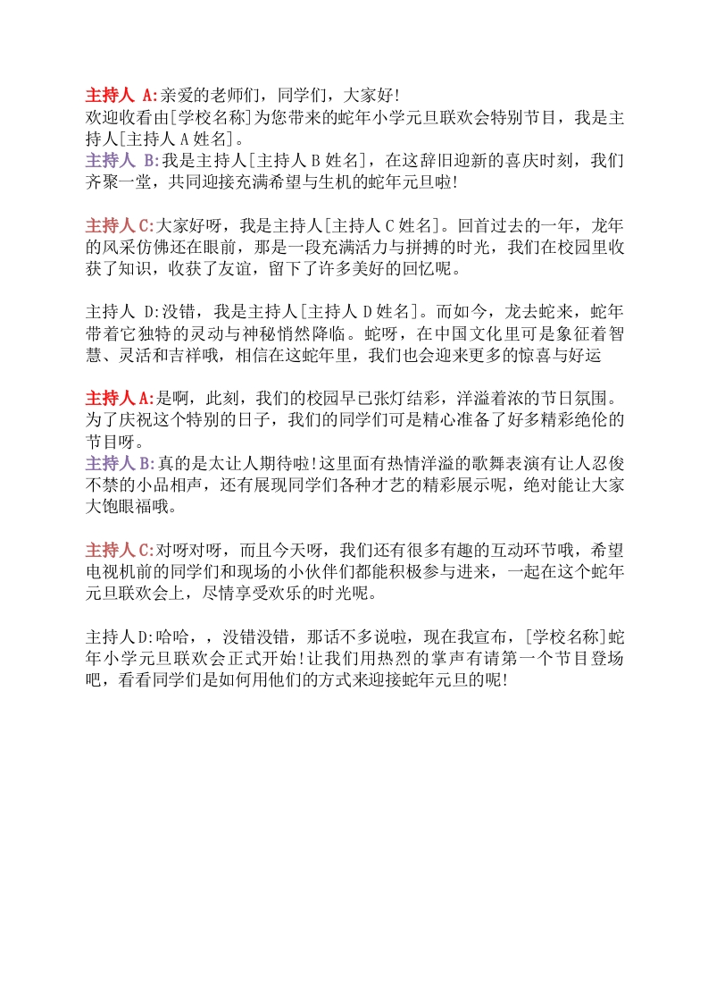54、小学三年级元旦联欢晚会主持稿电视台风格-2人主持稿