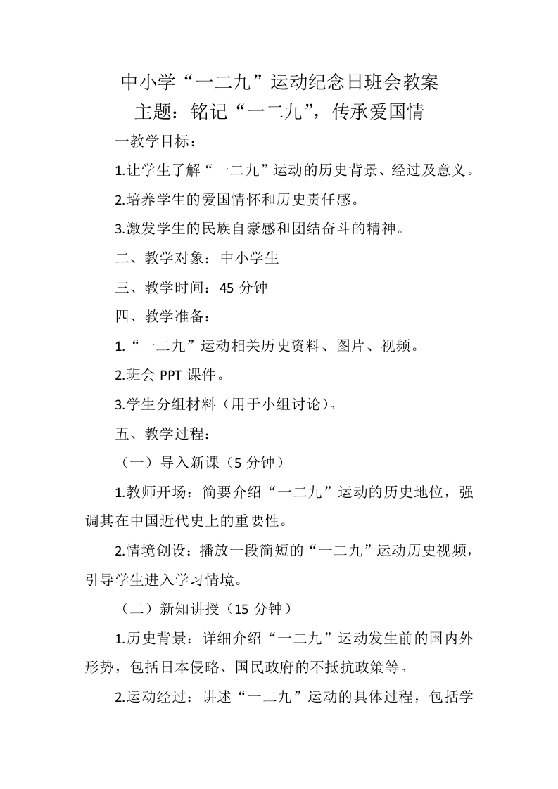 首页热门资源重要节日2024年“129”纪念日班会教案