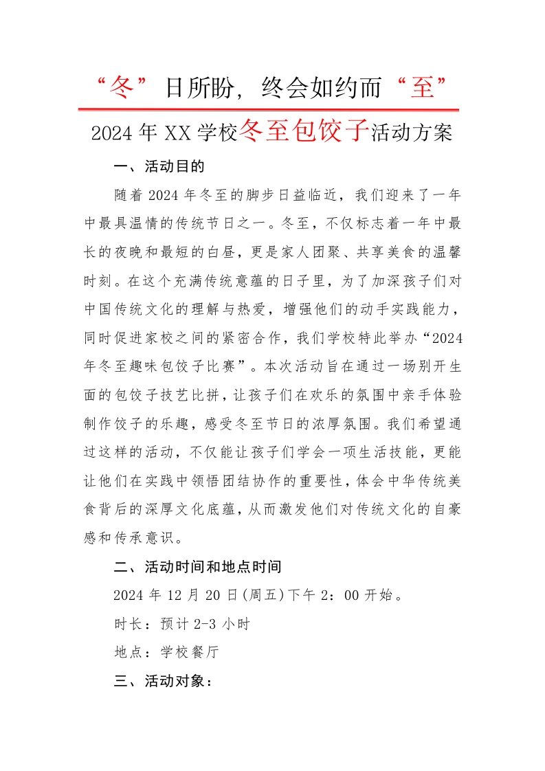 2024年冬至包饺子趣味比赛活动方案