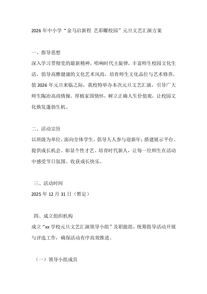 首页热门资源重要节日2026年中小学“金马启新程 艺彩耀校园”元旦文艺汇演方案