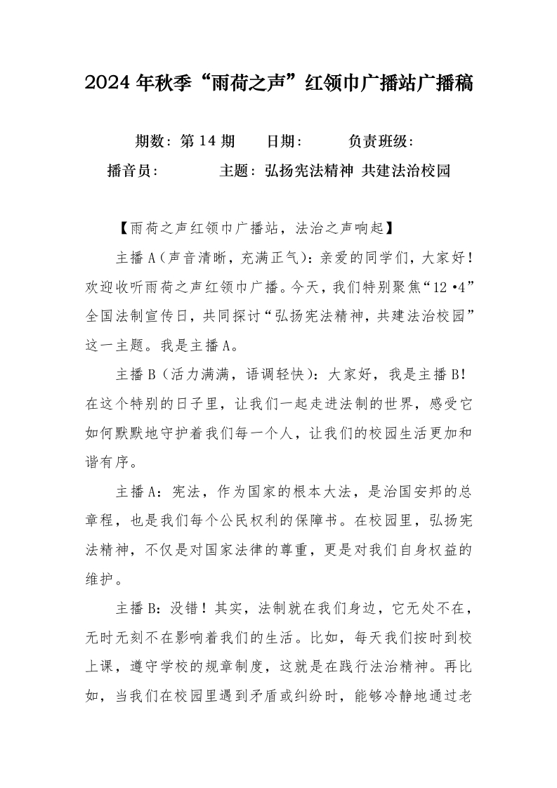 首页热门资源重要节日2024年全国宪法日暨法制宣传周广播稿