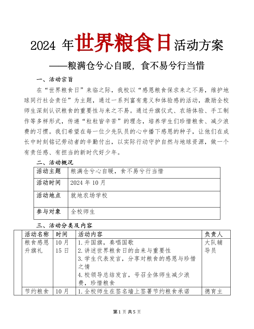2024年世界粮食日系列活动方案