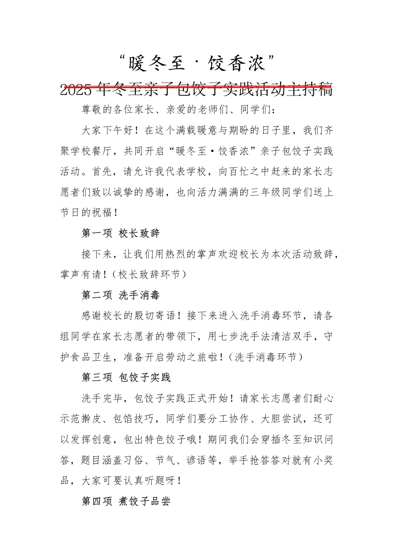 2025年冬至亲子包饺子实践活动主持稿:暖冬至,饺香浓
