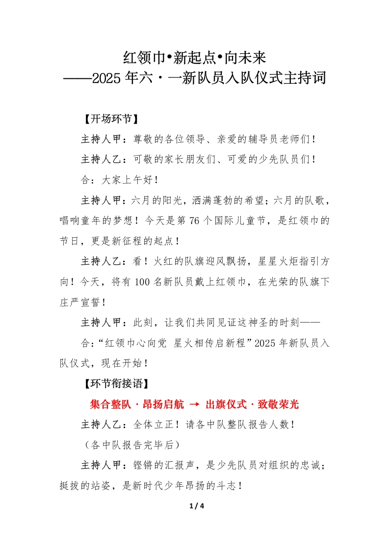 首页热门资源重要节日2025年六•一新队员入队仪式主持词