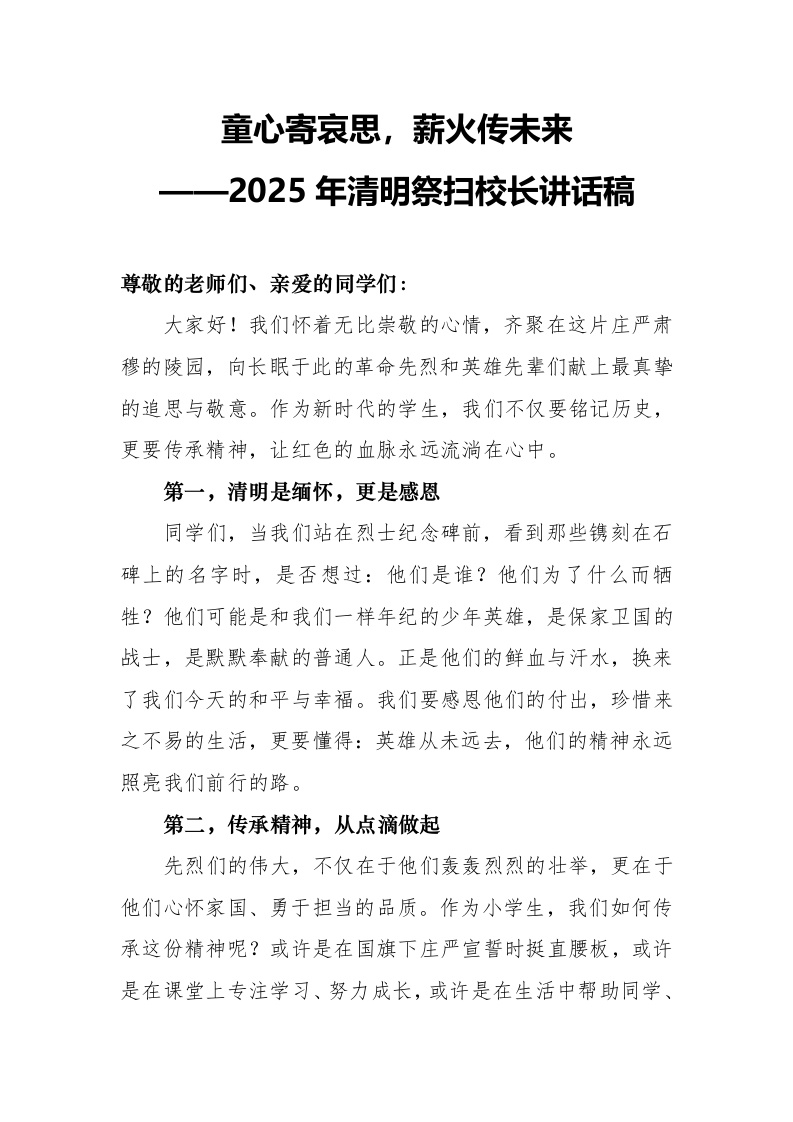 2025年清明祭扫陵园校长讲话稿