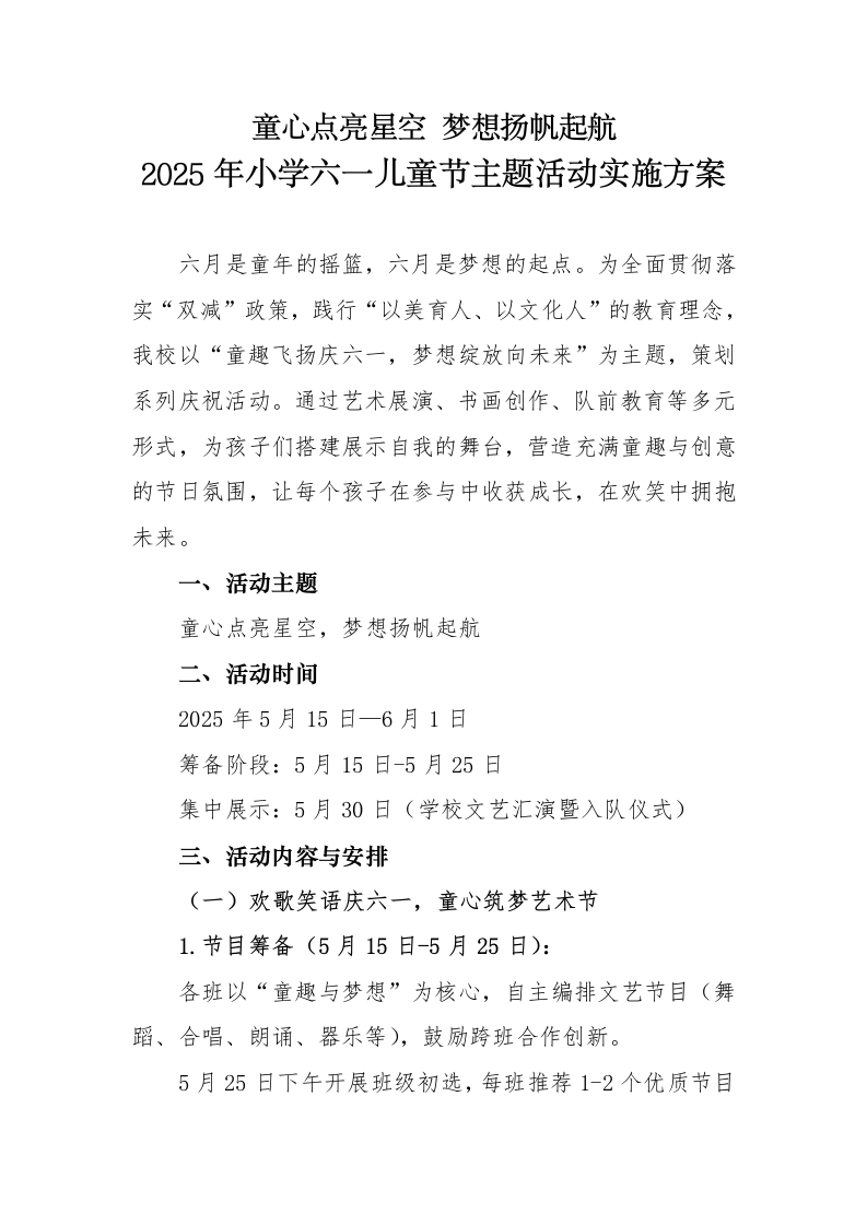 2025年小学六一儿童节主题活动实施方案